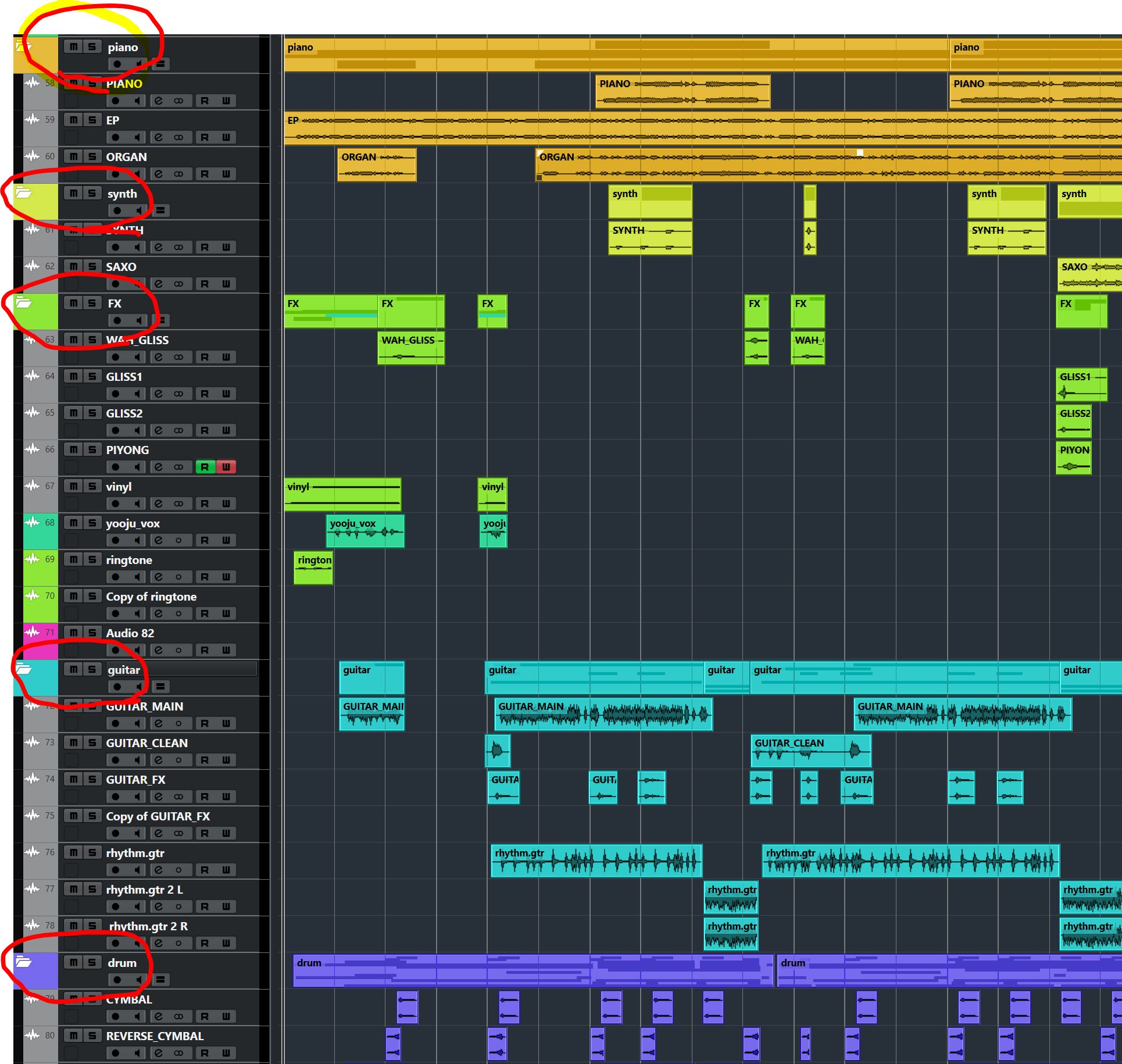 사진과 같이 트랙을 많을 경우에 폴더를 만들어서 같은 계열의 트랙을 정리합니다