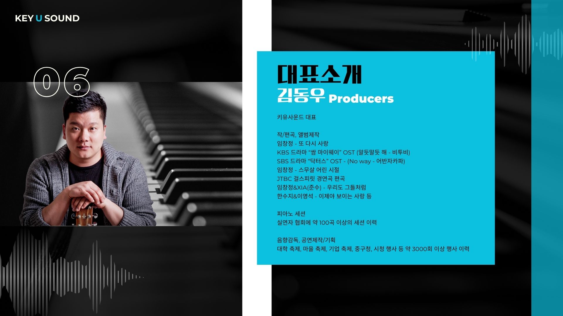 Key U Sound 는 2013년 설립된 문화 콘텐츠 제작 회사입니다.